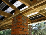 Примерно через два дня после заливки фундамент наберет прочность и можно приступать к кладке. Первые два ряда желательно сделать из красного обожженного кирпича. Делается это для выравнивания горизонта фундамента, так как при заливке могут быть погрешности и иметь наклон и нижний облицовочный или силикатный кирпич не разрушался от сырости. При изготовлении столбов первоначально устанавливаются металлические трубы ровно по центру столбов. Трубы эти устанавливаются при заливке фундамента, чтобы она была закреплена прочно. Делается это, конечно же, для того, чтобы столб из кирпича не упал, при сильном порыве ветра или просто облокотившись на него. Когда столбы будут готовы, приступаем к кладке пролетов при этом, не забывая соединять столб с кирпичной кладкой пролетов тонкой арматурой примерно через четыре ряда.